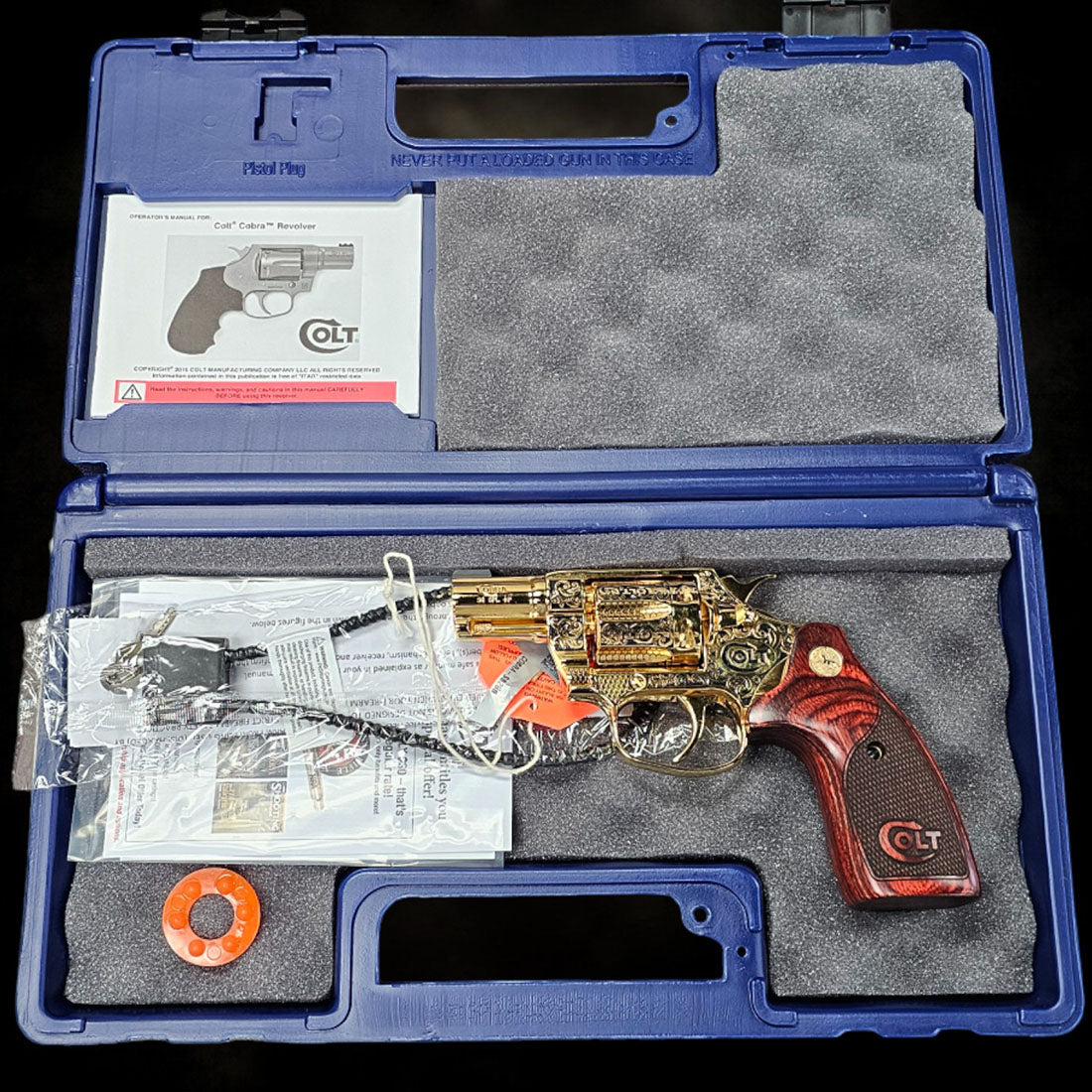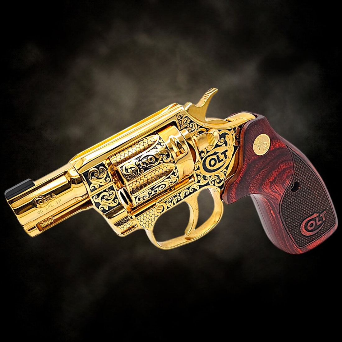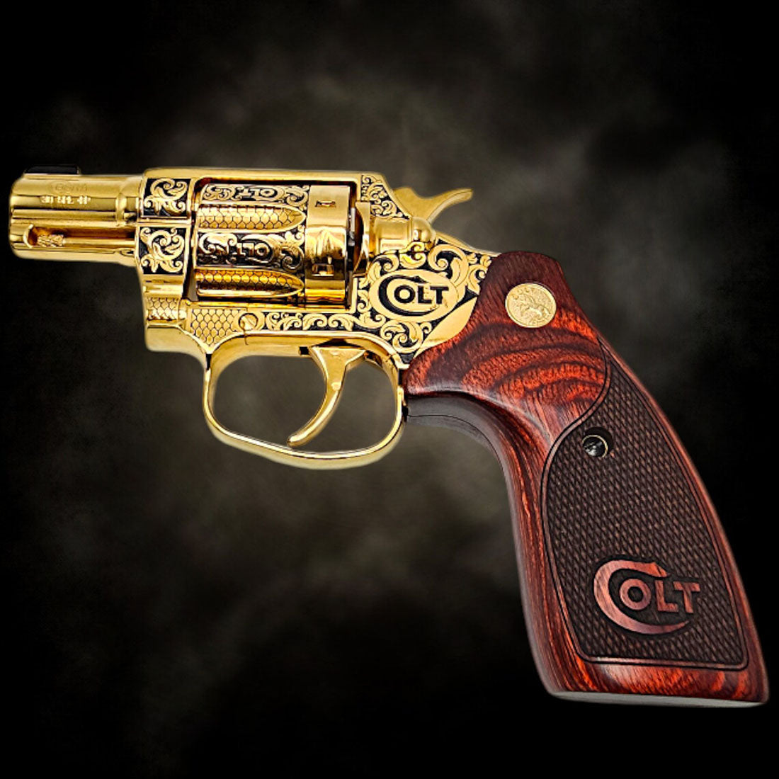 Presenting a truly magnificent and Exclusive & Only One custom revolver: the classic Colt Cobra 2". This highly sought-after .38 Special snub-nose has been transformed into a museum-quality firearm, featuring the ultimate in luxury finish and detail.