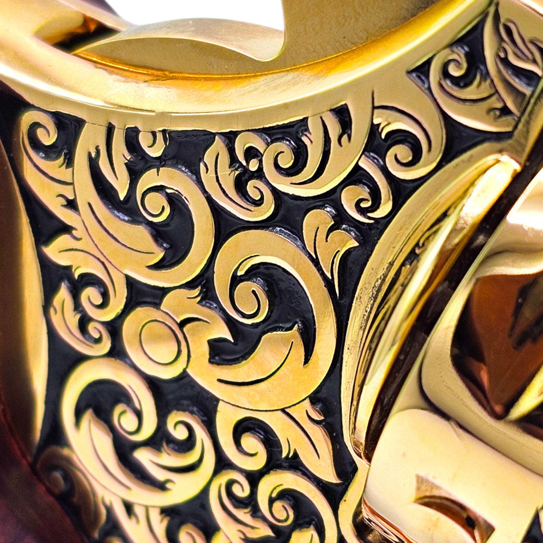 Stock: 24K Gold Plated, Engraved with Skulls & Flowers design