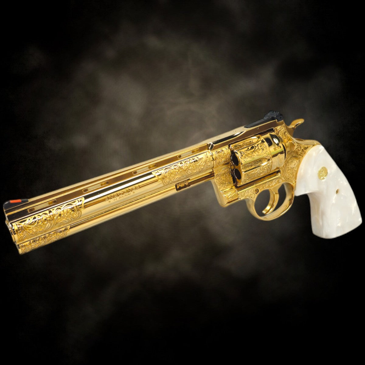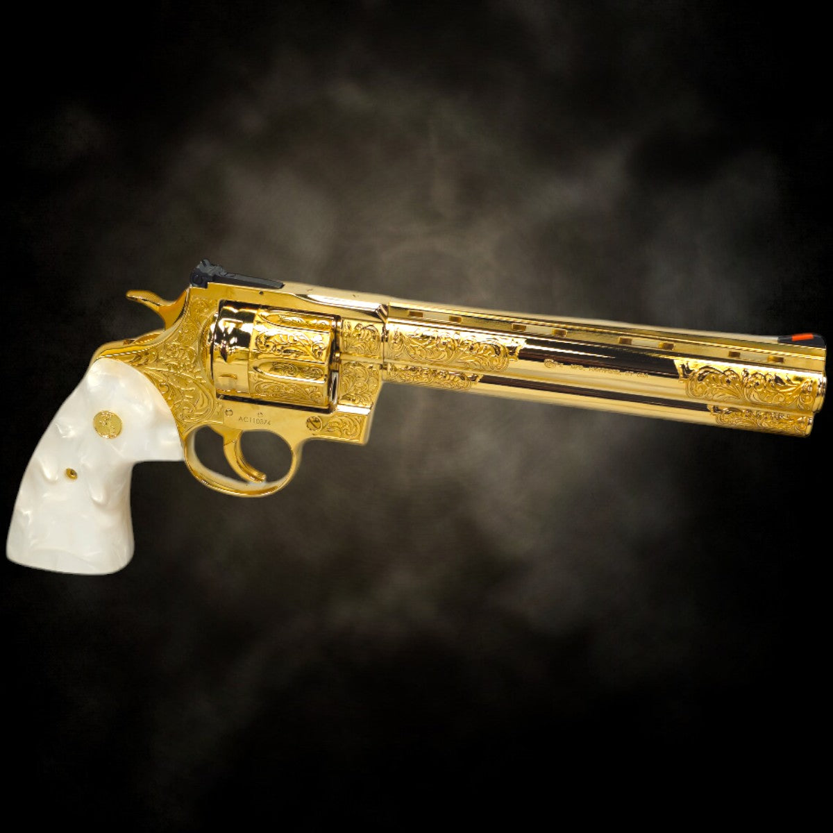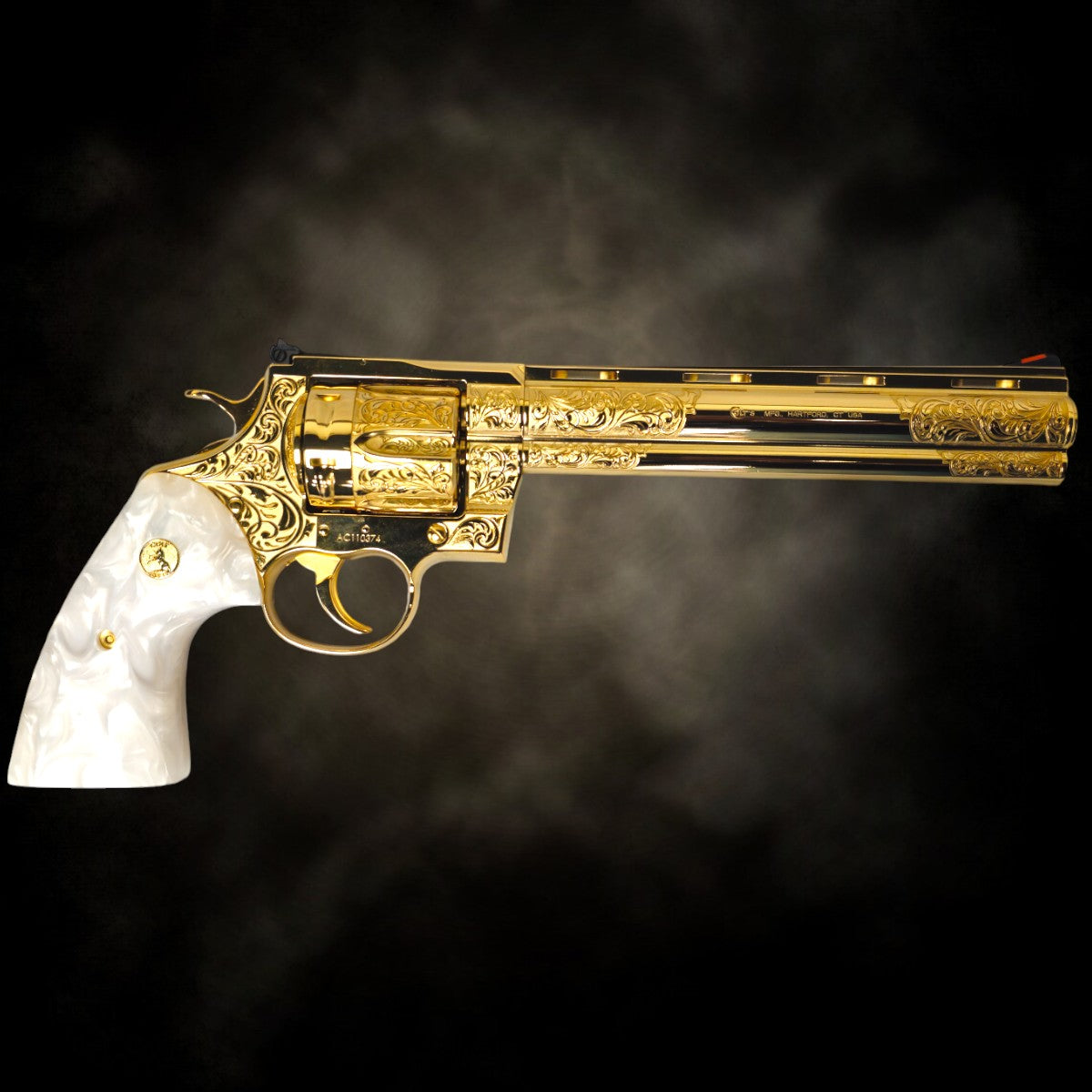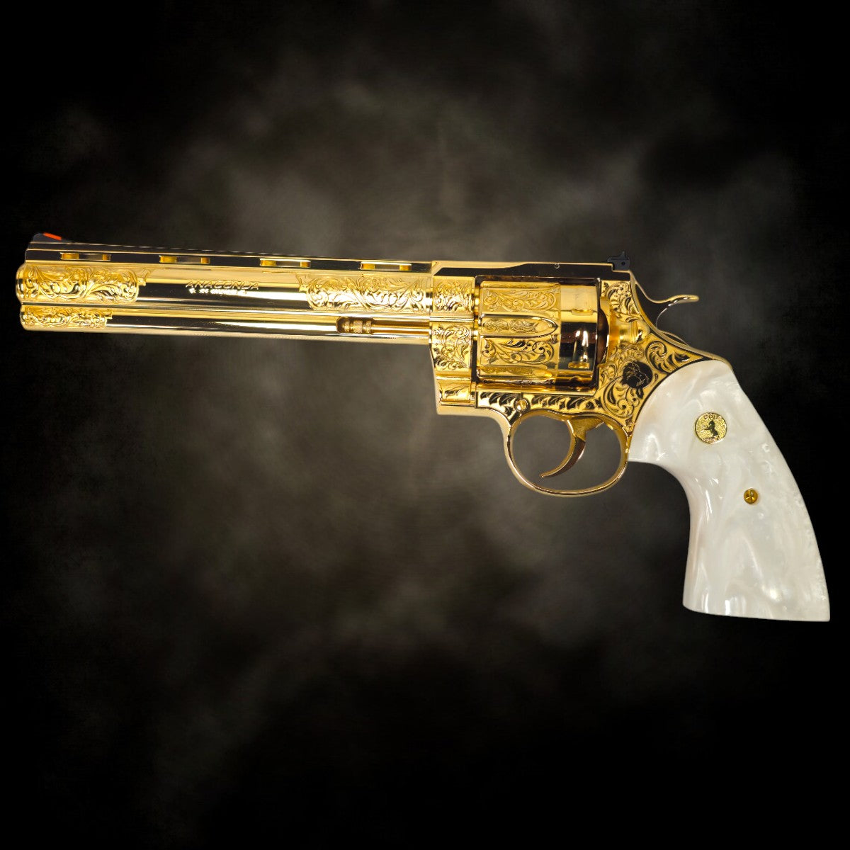 Whether you're a connoisseur of custom revolvers, a collector of gold plated firearms, or simply seeking a unique .357 Magnum that commands attention, this Colt Python stands in a class of its own. Secure this custom engraved gold gun for your collection today from Top Gun Armory.